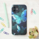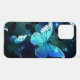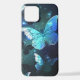 Fabuleux papillon de nuit bleu et jaune lumineux sur fond sombre.