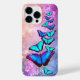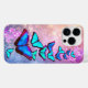 Coque iPhone Papillons bleus sur fleurs rose et lavande