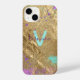 Contemporain et chic, ce coque iphone personnalisé présente un décor de parties scintillant métallique et scintillant en faux or, orné de éclaboussures artistiques de violet, rose et turquoise. Express votre style unique car le texte peut être adapté à vos préférences.