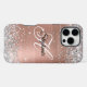 Créez votre propre appareil téléphonique monogrammé. Fille faux argent brillant parties scintillant sur rose or métallique style métallique sombre art numérique. Customisez les styles de police pour créer votre propre cadeau d'anniversaire pour elle.
