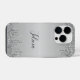 Protégez votre iPhone 14 Pro avec style grâce au **Classy Monogrammed Silver Dripped Parties scintillant Coque**. Doté d'un design élégant avec des gouttes d'argent chatoyantes et personnalisé avec votre monogramme, ce coque ajoute une touche de luxe et de sophistication à votre appareil. Le design élégant et ajusté offre une protection durable contre les rayures et les gouttes, tout en maintenant un accès facile à tous les boutons et ports. Parfait pour ceux qui aiment un mélange de glamour et de fonction, ce coque vous permet de présenter votre style unique tout en gardant votre téléphone sûr et chic.