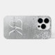 Personnalisez facilement ce design branché de boîtier de téléphone chic avec une jolie parties scintillant brillante en argent sur un arrière - plan métallique brossé en argent.