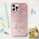 Coque iPhone Parties scintillant en métal brossé rose pâle Nom