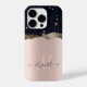 Coque iPhone Parties scintillant noire moderne Rose or Monogram