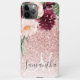 Coque iPhone Parties scintillant rose moderne et flamme à fleur