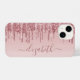 Personnalisé, élégant et coque iphone girly avec parties scintillant simili rose rose sur un arrière - plan d'or rose à l'ombre. Personnalisez avec votre nom dans un élégant script d'or rose à la mode avec des swashes.