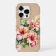 A tropical yet soft watercolor hibiscus design with warm blush and coral tones.