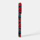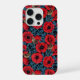Coque iPhone Pavot rouge et brunes, feuilles bleus sur noir