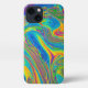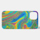 Peinture coulée de marbre motif abstrait dans les tons psychédéliques de bleu clair, turquoise, rose chaud, vert et jaune vif.