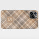 Motif contemporaine tan, marron, beige, taupe et crème d'ivoire blanc tartan plaid. Avec de la place pour customiser ou personnaliser avec un monogramme ou une initiale de votre choix. Belle couverture moderne et cool pour le brancheur tendance et amateur d'art branché, amoureux de motifs artistiques qui veut protéger leur téléphone de la poussière et de la saleté, de l'usure et de la déchirure. Cette conception est disponible en coques de téléphones cellulaires Apple iPhone 6, 7 et 8 Plus, 10 ou X, XR, XS, 11, 12, 13 Mini, 14, 15 Plus et Pro Max. Montrez votre style, regardez à la mode, et sentez élégant avec un design unique sur un accessoire mobile de votre choix.