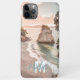 Étui pour iPhone 11 Pro Max avec photo de monogramme M de nom de plage de coucher de soleil de pêche moderne tendance.