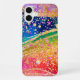 Boîtier de téléphone portable avec motif tourbillon de couleur arc-en-ciel. Les confettis de parties scintillant Faux et les accents d'or ajoutent une ambiance festive amusante.