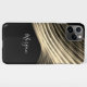 Personnalisez le nom en écriture blanche sur Pale Gold Curved Light Rays sur arrière - plan noir pour un look contemporain et dynamique qui habillera parfaitement votre étui téléphonique. Fait un grand cadeau.
