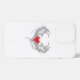 Coeur rouge peint de façon artistique avec ailes d'ange gris, décoré de contour lisse noir.