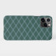 Ce boîtier de téléphone portable présente un design élégant d'inspiration Art déco. Dans un cadre vert de forêt riche, une série de lignes bleues croisées formant des contours rhombus crée un contraste visuel captivant. L'agencement géométrique mêle harmonieusement esthétique moderne et nostalgique. Avec son harmonieux mélange de couleurs et son design complexe, ce coque offre une façon unique de protéger et d'orner votre téléphone.
