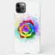 Grand rose fleuri avec pétales arc-en-ciel sur arrière - plan blanc, peint sur des éclaboussures de peinture colorée et lumineuse. 3d