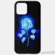 Fleur, rose abstrait de la flamme bleue sur arrière - plan noir. Rose de feu.