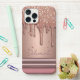 Coque iPhone Rose Gold Glitter Drip Custom Name Monogram