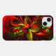Coque iPhone Rouge vert moderne Floral Abstrait Art Motif #05