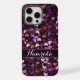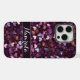 Boîtier téléphonique en or rose et violet Rose or étincelant avec coeurs de parties scintillant en or rose rose et violet élégants dans un cadre élégant, personnalisé avec votre nom.