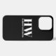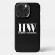 Customisez, personnalisez monogramme, lettre d'initiales et nom noir et blanc simple minimaliste moderne élégant classique chic coque iphone élégant. Texte blanc personnalisable, arrière - plan uni noir.