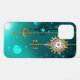 Or, clés antiques avec engrenages et cadrans accrochés sur chaînes dorées sur arrière - plan vert lumineux.