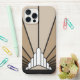 Un motif de style art déco classique créé dans le bronzage. Un motif emblématique du soleil se levant derrière un bâtiment en forme d'art déco stylisé. Un design simple mais élégant, fidèle à l'époque.