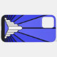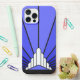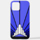 Un motif de style art déco classique créé en bleu. Un motif emblématique du soleil se levant derrière un bâtiment en forme d'art déco stylisé. Un design simple mais élégant, fidèle à l'époque.