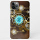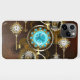 Turquoise lenses with antique watch with brass gears and golden keys on rusty, brown background. Steampunk style.