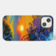 arbre à fleurs coloré bleu et violet Beau lever de soleil à l'horizon sur l'étang herbes colorées AI ART créé par minx267