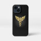 Symboles Caduceus polygonaux or sur arrière - plan noir isolé. Basse poly symbole de la médecine.