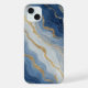 Coque iPhone Texture de marbre bleu et or abstrait