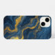 Coque iPhone Texture de marbre bleu et or abstrait
