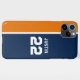 Housse de téléphone à thème sport orange et bleu amusant, changer le texte et logo vous-même lorsque vous commandez. .
