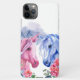 Coque iPhone Unicornes avec fleurs Aquarelle Art