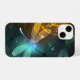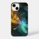 Vol de libellules brillantes, vertes, artistiquement dessinées avec des ailes vertes et jaunes transparentes sur arrière - plan de nuit brillant avec des plantes de marais et des lucioles. libellule éclatante.