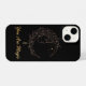 The design features a stunning crescent moon entwined with delicate flowers, framing a serene female profile in elegant golden line art. A single crystal lantern hangs from the moon, symbolizing guidance and intuition. Set against a deep black background, the gold and rose-gold tones shimmer with a magical aura. This case is a powerful daily reminder of your unique power and the cosmic beauty within you.