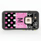 Caisse noire Girly de l'iPhone 7 de LifeProof FRĒ® avec un motif noir et blanc de damassé, sur le dessus, un motif floral rose et blanc, dans le milieu, et un blanc et rose sur le motif de point noir de polka, à travers le fond. Personnalisez l'un monogramme noir de lettre, pour adapter à vos besoins. A choisi le style de cas et vous dactylographie veulent avant la commande.
