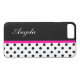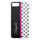 Les coques monogrammes monographiques monographiques avec pois noir et blanc chic motif et bande de mode rose que vous pouvez customiser, et l'espace de dépôt de nom que vous pouvez créer vous-même en remplaçant le nom du modèle par le vôtre ou en ajoutant vos initiales monographiques. Vous permet de porter votre téléphone portable dans votre propre style.