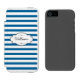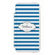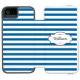 Porte-téléphone à rayures horizontales bleu et blanc avec bannière blanche, vous pouvez facilement customiser avec votre nom!
