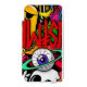 L'image est un mashup de graffiti, de dessins animés (cartoons) et de symboles liés à la culture skate/punk/streetwear. C'est une composition "all-over" (qui couvre toute la surface) où l'espace négatif est presque inexistant.