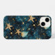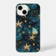 Un iPhone 14 Slim Fit Coque avec un élégant motif bleu avec étoiles de mer, représentant l'océan.
