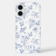 Coque Pour iPhone 16 Bleu Floral Toile Papillon Monogramme coque iphone