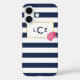Ce boîtier téléphonique élégant est doté d'un arrière - plan rayé bleu marine et blanc, d'une bordure en faux or et d'une jolie pivoine rose aux couleurs douces. Coordonner avec nos accessoires de bureau Navy Stripe & Pink Peony, produits en papier et accessoires. Customisez avec un monogramme, un nom ou un texte de votre choix !