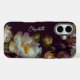 Ce coque iphone botanique floral foncé est le cadeau parfait pour elle qui combine le charme botanique antique avec une touche de personnalisation, avec son nom. Idéal pour la fête des mères, la Saint-Valentin, un anniversaire ou toute occasion spéciale. Les fleurs sont joliment peintes à la main avec un logiciel numérique en blanc, crème, teintes de rose et pêche sur un arrière - plan magenta foncé créant un effet visuel frappant.