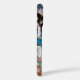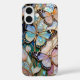 Étui élégant pour iPhone présentant un design de papillon de style vitrail avec des tons doux de pourpre, de bleu et de pastel, rehaussés de détails dorés délicats et d'éléments floraux subtils. La composition aérienne crée un look gracieux et féminin.