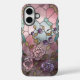 Ceci est un Rose Vitre Vitré iPhone 16 Coque. L'art a été créé avec de l'art génératif. L'art dispose d'un joli vitrail avec un design rose fleuri, feuille et parties scintillant d'or. La fenêtre est rose vif, bleu turquoise, violet, violet, violet et or couleur parties scintillant. Le design floral comprend des roses et des feuilles. Vous pouvez ajouter un nom ou un texte à l'aide du bouton Personnaliser. Vous pouvez également remplacer l'image par une image de votre choix.