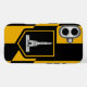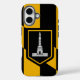 iPhone 14 Coque avec le drapeau de la ville de Baltimore, Maryland; drapeau noir et jaune avec une illustration du monument de bataille