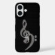 Une musique simple noir/blanc classe à thème Musique - Treble et Bass Clef iPhone 16 Coque - blanc treble et clés de basse contre un arrière - plan noir texturé. Amour Musique.