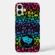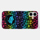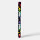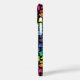 Cette étui téléphonique enjouée a des icônes de théâtre en arc-en-ciel sur un arrière - plan noir avec un cercle noir tenant des masques de drame bleus avec espace pour personnaliser avec votre choix de nom, initiales, etc.